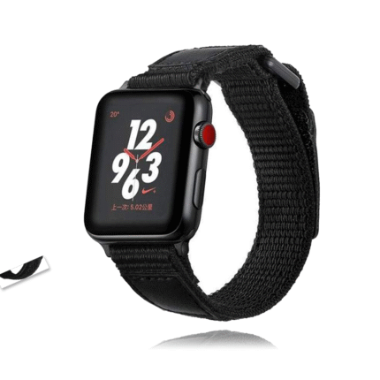 Black Leather Sport Loop Woven Nylon Breathable Wristband Series 7 6 5
